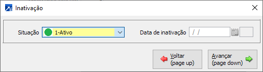 3-Inativo (Bloqueia): Situação inativa e bloqueada, ou seja, impede o uso nos movimentos do planejamento. Quando selecionada essa opção deve ser informada a data de inativação.