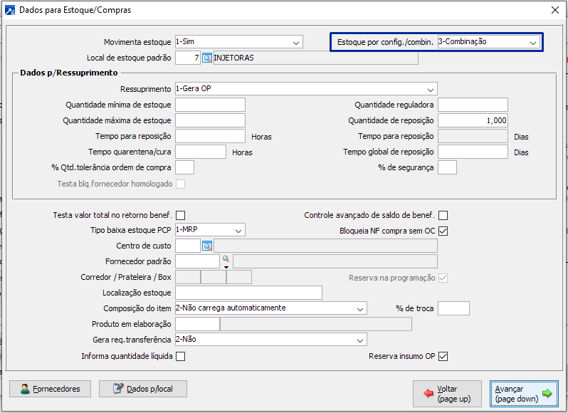 Para que o SIGER® possa declarar no Bloco K cada combinação de um produto como se fosse um produto diferente, o produto precisa estar configurado para controlar Estoque por Combinação.