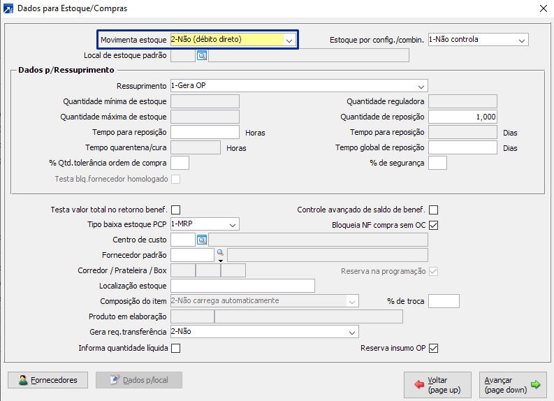 Para que o SIGER® não envie estes insumos no Bloco K eles devem estar configurados para não movimentar estoque.
