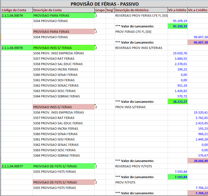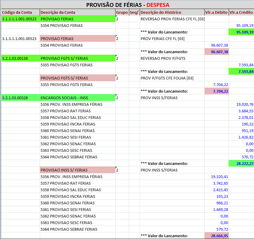 Provisão de Férias - REVERSÃO PELO LÍQUIDO