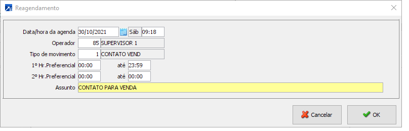 Realizando um Reagendamento por dentro de um Contato