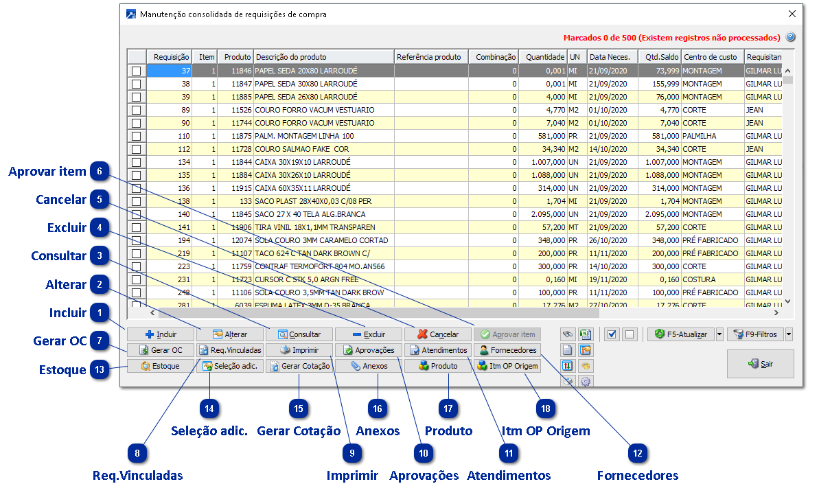 Manutenção consolidada de Requisição de Compras (itens) está disponível no menu COM 2.1-M.