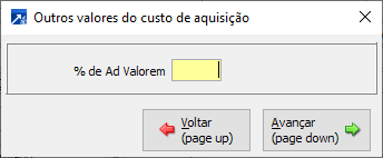 Caso a empresa informe valor de acréscimo de estoque, abrirá um campo específico para o valor, onde este será agregado ao custo de aquisição.
