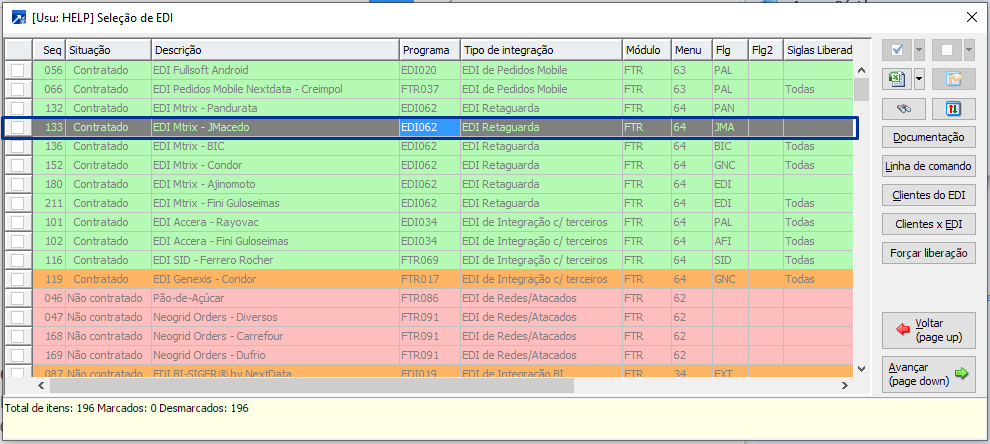 Observação: para exibir a linha de comando, clique no botão <Linha de comando> na janela de "Seleção de EDI" (acima).