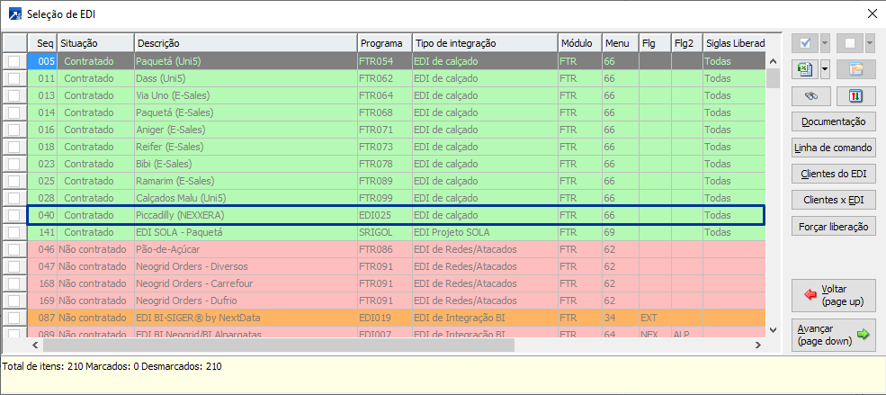 Para verificar se o EDI está liberado, deve ser feita a consulta pelo menu FTR 6.1-D (Integrações disponíveis).