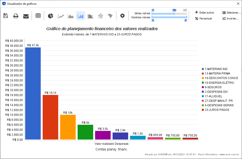 O gráfico é gerado no menu FIN 6.3-R (Gráfico Planej.Financeiro).