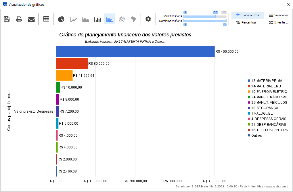 2-Somente previsto: Lista somente os valores realizados das contas, exemplo do gráfico de barras.