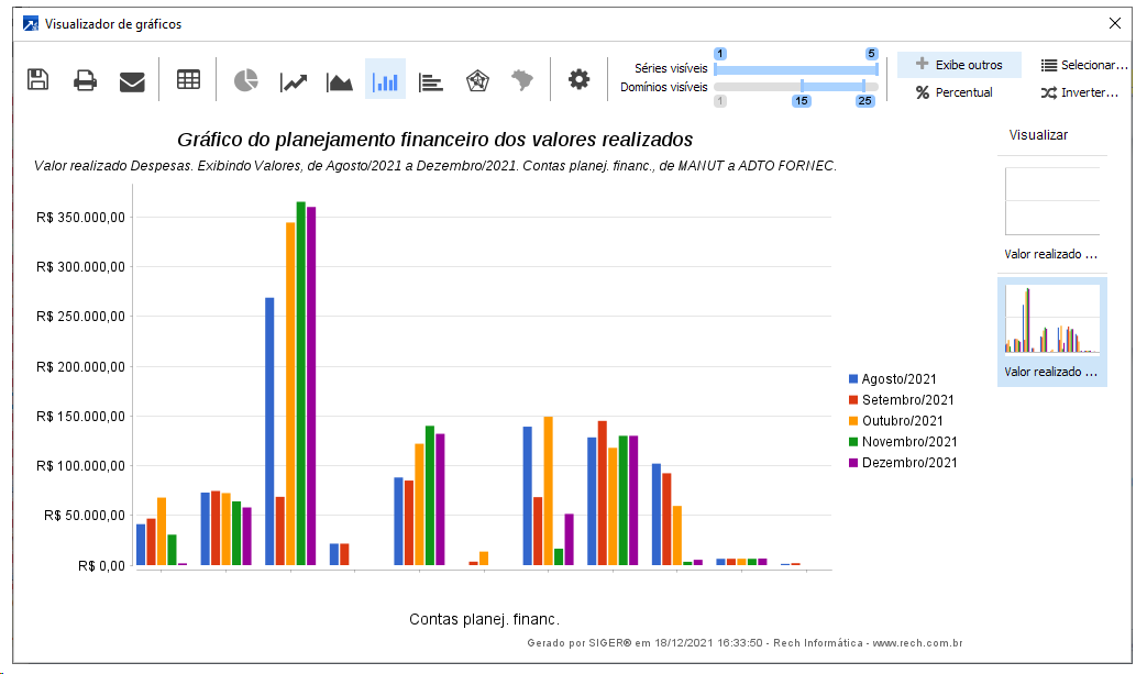 3-Previsto/Realizado: Lista os valores previstos e realizados, exemplo do gráfico de barras.