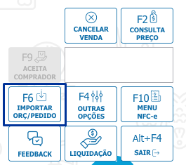 Este recurso é disponibilizado através de um parâmetro de sistema localizado no menu 1.1-P, botão <Ponto de venda>, "Permite importação". É possível acessa-lo através da função "F6-Importar Orç/Pedido".