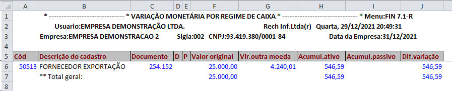 A listagem da variação monetária é emitida no menu FIN 7.1-R (List.Var.Mon.p/Reg.Caixa).