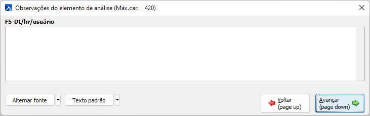 Espaço para descrever observações para o elemento de análise/análise realizada.