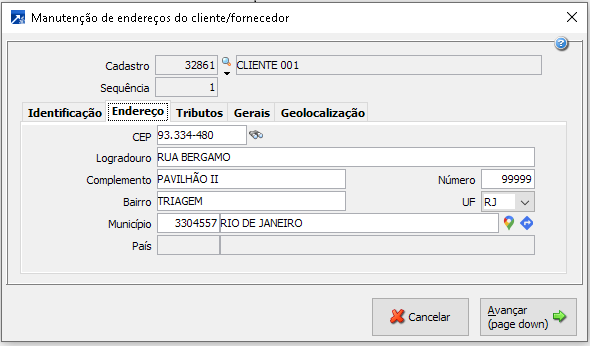 Código de cadastro (cliente ou fornecedor) proprietário do endereço.