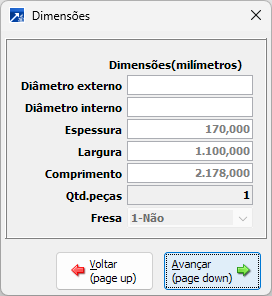 Obs.: o botão é habilitado quando, o produto possui "Medida fixa" = "2-Não" ou "13-Não+Regulagem" E o "Tipo divisórias/dimensões" dos padrões para produção do Grupo de produto é = "09-Dim.p/chapas:Espes/Larg/Comprim+Tolerância".