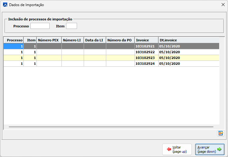 Obs.2: o botão é habilitado apenas quando o fornecedor informado for do exterior.