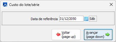 Para formação do custo do lote/série, somente serão consideradas movimentações até a data informada.