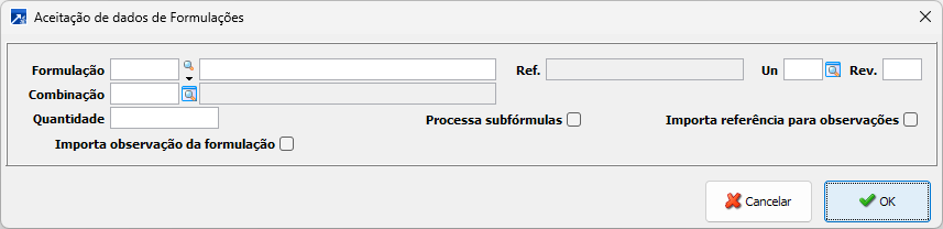 No caso do produto possuir gabarito de configuração e o sistema estar configurado para controlar estoque por configuração/combinação, após informado o código do produto será exibida a janela padrão para que seja informada a configuração do mesmo.