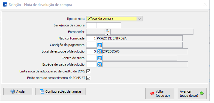 Na nota emitida nesta CFOP será devolvido o ICMS destacado na nota de compra referente a Substituição Tributária.