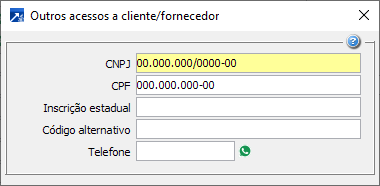 Acesso a cadastro de cliente/fornecedor pelo CNPJ ou CPF: Para acessar esta janela tecle F6 quando o cursor estiver posicionado em um campo de código de cliente ou fornecedor.