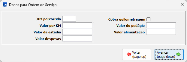 Dados para Ordem de serviço.