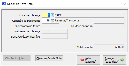 Ao avançar, o sistema exibe uma janela de confirmação dos dados de pagamento. Note que não é mais solicitado o código do novo pedido.