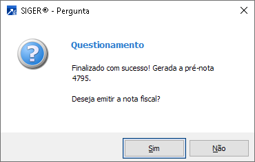 Ao confirmar, exibirá mensagem para emissão da pré nota gerada. Se optar por emitir a pré nota posteriormente, deverá acessar o menu FAT 2.3-B - Gerenciamento de Notas. + Saiba mais