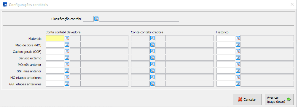 Configurações contábeis por classificação contábil, utilizado quando a forma de contabilização pode variar conforme a classificação.