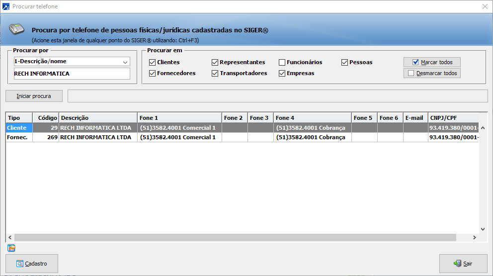 Data do último backup gerado pelo SIGER®. + Saiba mais