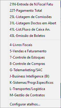 Este botão permite que sejam criados atalhos dos menus principais para o usuário.