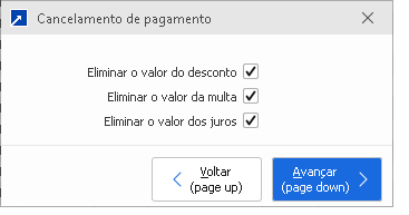 Ao selecionar o botão, será aberta uma janela que permitirá indicar se os valores de descontos, multas e juros também deverão ser eliminados.
