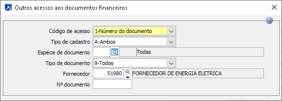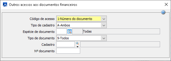 F7-Outros acessos docto: Esse atalho acessa a janela "Outros acessos aos documentos financeiros".