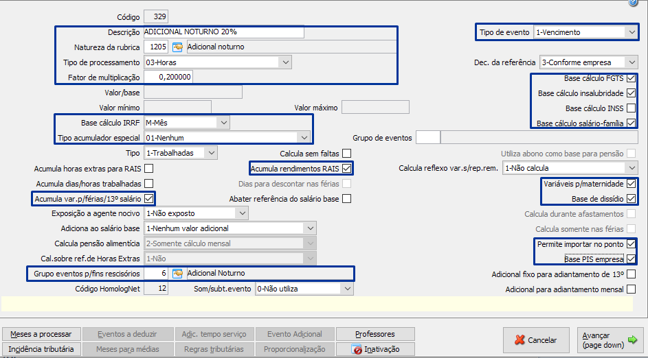 Para o SIGER® calcular automaticamente as horas noturnas, será necessário vincular o evento de Adicional noturno, no SIDINCATO, menu FPA 1.3-A, tabela 4, botão [Dados adicionais], botão [Adicional Noturno] ou no cadastro da empresa, menu FPA 1.2-A, botão [Eventos automáticos].