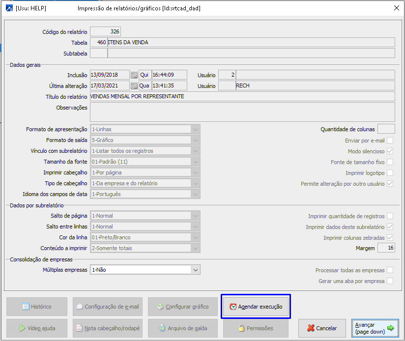 Várias rotinas do SIGER® possuem um botão de acesso rápido para o agendador de tarefas, como por exemplo, a rotina 9.2-R do gerador de relatórios.