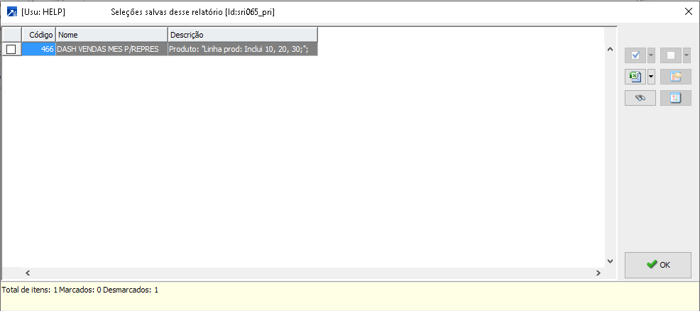 OBS.: As seleções devem ser criadas utilizando o usuário que fará o envio do relatório.