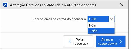 A alteração geral de contatos de clientes/fornecedores permite modificar um ou mais contatos de uma vez.