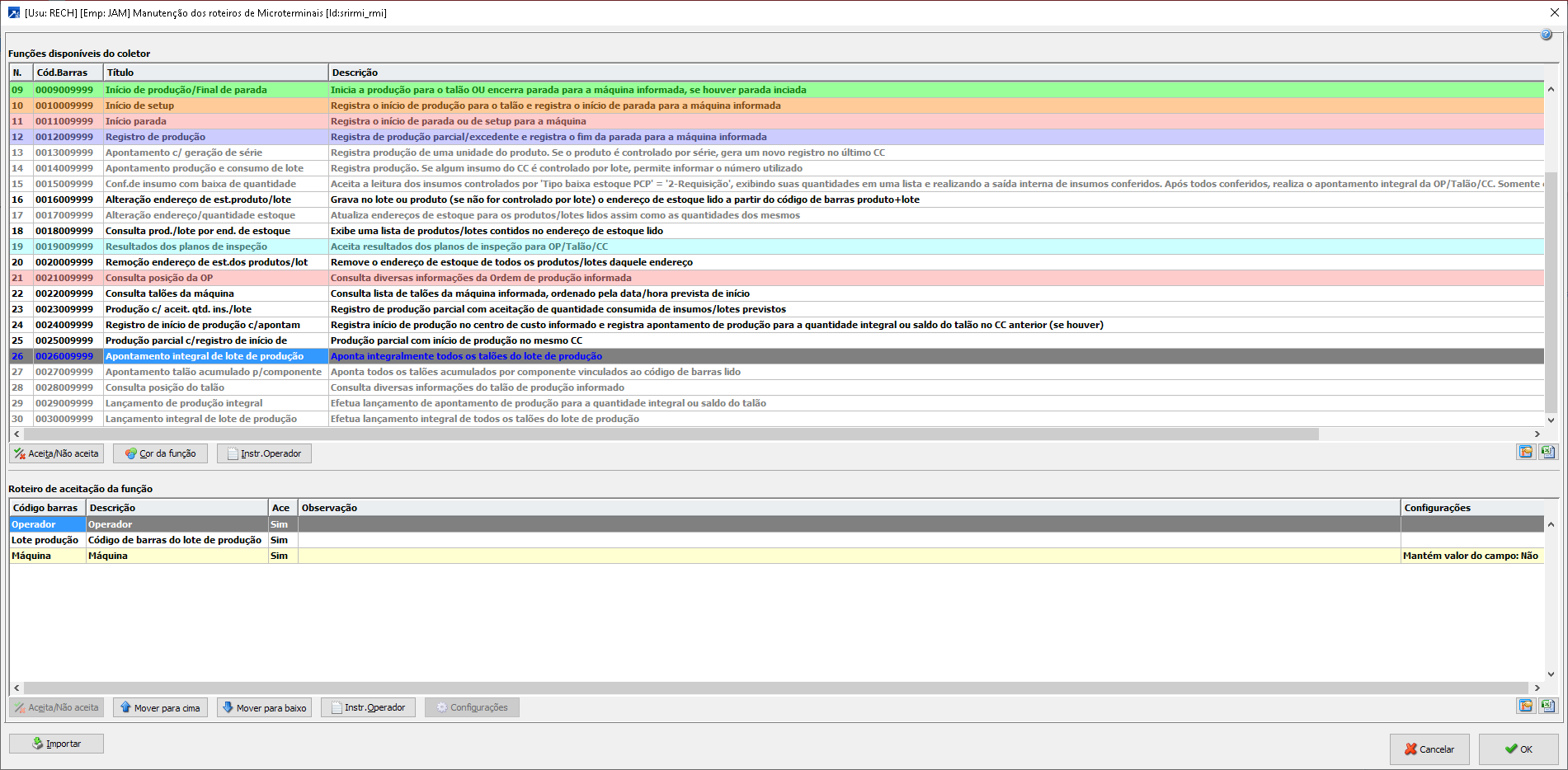 '2-Não controla': Quando a empresa estiver configurada para não controlar operador, esse campo não será aceito na função.