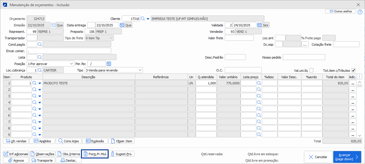 Quando marcado, será habilitado o botão [Form.Pr.Mul.] na manutenção de orçamentos e habilitará os campos "Exibe margem de sugestão" e "Exibe margem de referência" na janela de formação do preço de venda de múltiplos produtos.