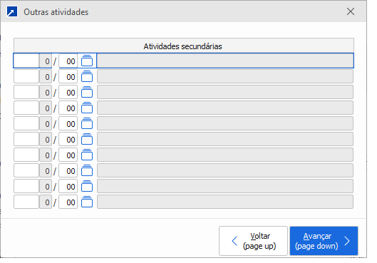 Ao clicar neste botão, vai abrir uma tela para incluir as atividades secundarias que constam no cartão CNPJ da Empresa.