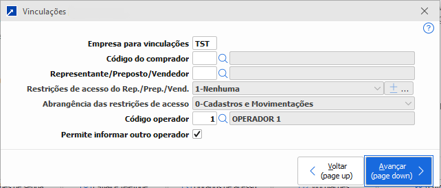 Indicar a empresa para vinculações (sigla onde aquele operador irá utilizar o sistema)