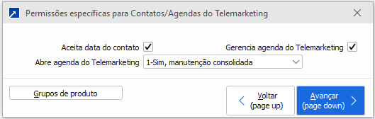 Vamos nos concentrar em dois tipos de permissões que são: "Protocolos do Telemarketing" e "Contatos/Agendas do Telemarketing".