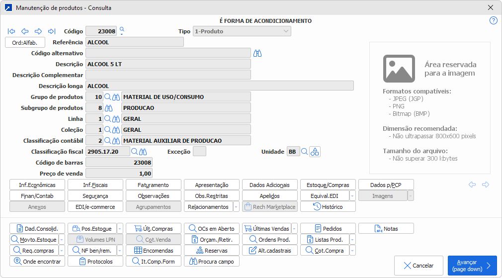 Após utilizar esta opção de importação, caso necessite alterar algo dentro do cadastro do produto que é forma de acondicionamento pode ser acessado o menu 1.6-R, opção por digitação, e após ir em Dados Específicos para alterar seus dados.
