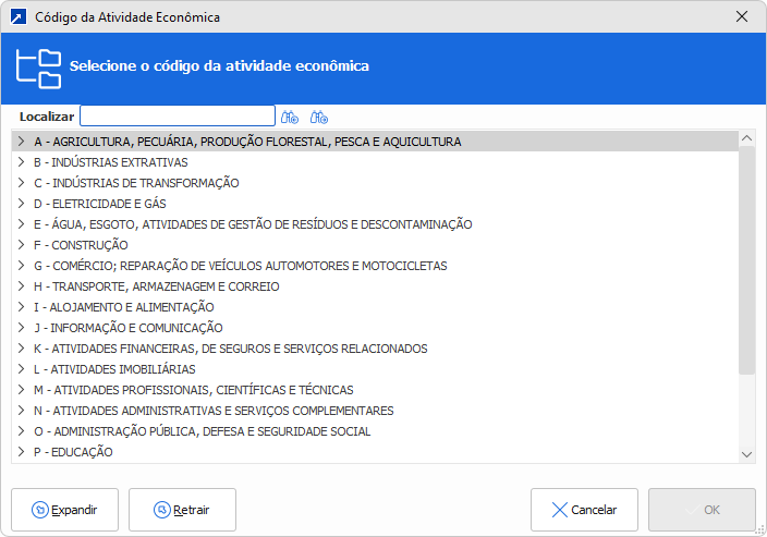 CNAE (código da atividade do produto) específico para o produto, para acessar a tabela de códigos clicar no botão ao lado do campo.
