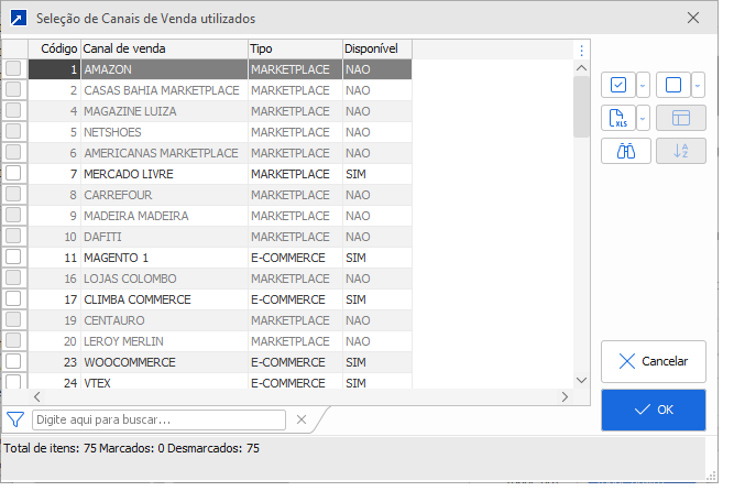 Indica se usa canais de venda específicos, habilitando o botão de canais de venda.