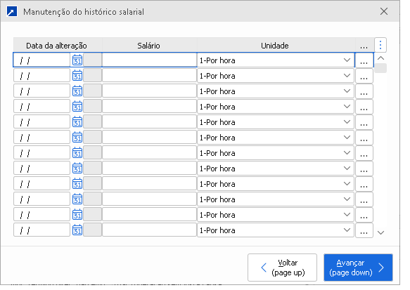 Botão o qual poderá incluir o histórico salarial do trabalhador.