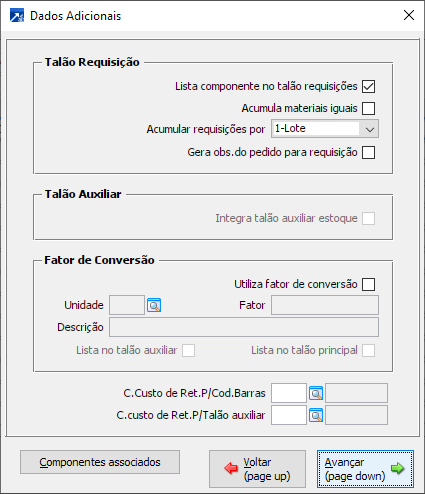 Já os botões  servem para alterar a ordem das operações de determinado centro de custo (ou seja: colocar uma etapa antes da outra, etc).