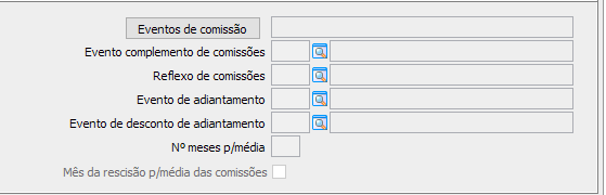 Exemplo: da configuração no sindicato referente aos eventos do comissionado, no MENU FPA 1.3-A, tabela 4, botão [Comissões], informar os eventos de comissão, repouso sobre comissão, e quando tiver mínimo garantido, precisará informar o evento de complemento de comissão. Informar a quantidade de meses que serão utilizados no cálculo da média de comissão para férias e 13º salário, quando não informado nada, SIGER® segue a regra da CLT.