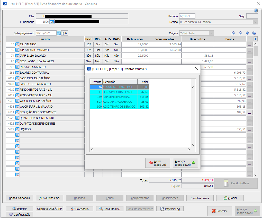 Exemplo: funcionário tem dois eventos de salário base e o cálculo da segunda parcela, será apurado média do período.