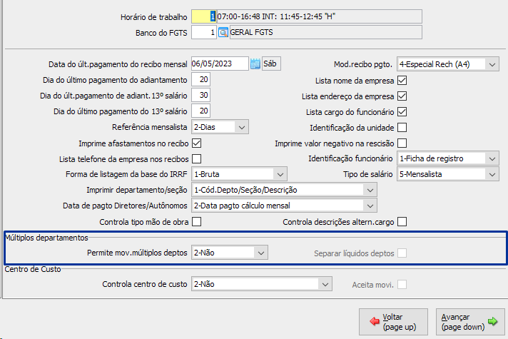 No botão [Dados adicionais 2] selecionar que 1-SIM no campo "Permite mov.múltiplos deptos".