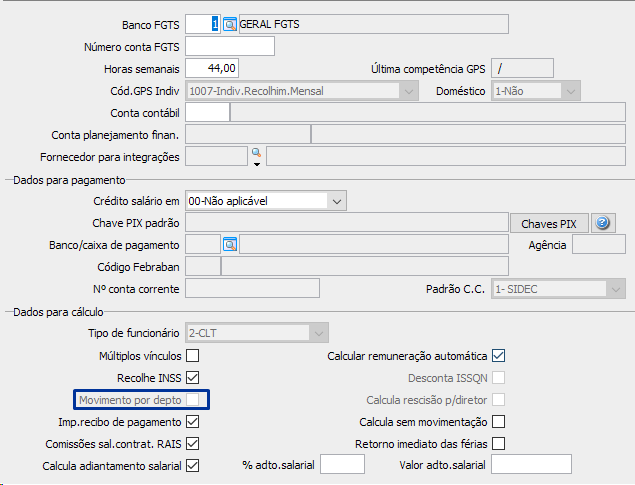 Marcar a check box "Movimento por depto" no cadastro do funcionário, menu FPA 1.8-A, botão [Cálculo e Pagto].