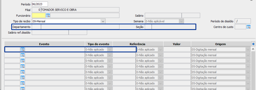 Incluir os movimentos da folha, menu FPA 2.2-I, quando for necessário fazer rateio entre tomadores/obra, informando o código do departamento/seção que representa o tomador/obra e o evento 1-Salário base e a referencia que o funcionário trabalhou em dias ou horas. Para configurar os tomadores/obra, menu FPA 1.4-M, tabela 2.
