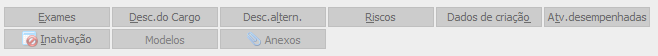 Esta aba é utilizada no SST- Saúde e Segurança do Trabalho, serve para vincular os exames necessários aos funcionários do cargo, caso a forma de implantação do SST tenha sido realizada por cargos.
